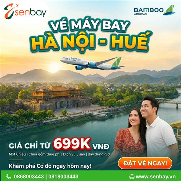 Bạn đang tìm kiếm sự bình yên bên dòng sông Hương hay muốn khám phá nét cổ kính của Kinh thành Huế? Hành trình từ Thủ đô đến miền Di sản sẽ trở nên trọn vẹn và đẳng cấp hơn khi bạn đồng hành cùng vé máy bay Hà Nội Huế Bamboo Airways tại Senbay. Với phong cách phục vụ hiếu khách và tỷ lệ bay đúng giờ hàng đầu, Bamboo Airways kết hợp cùng hệ thống đặt vé thông minh của Senbay.vn chắc chắn sẽ không làm bạn thất vọng.